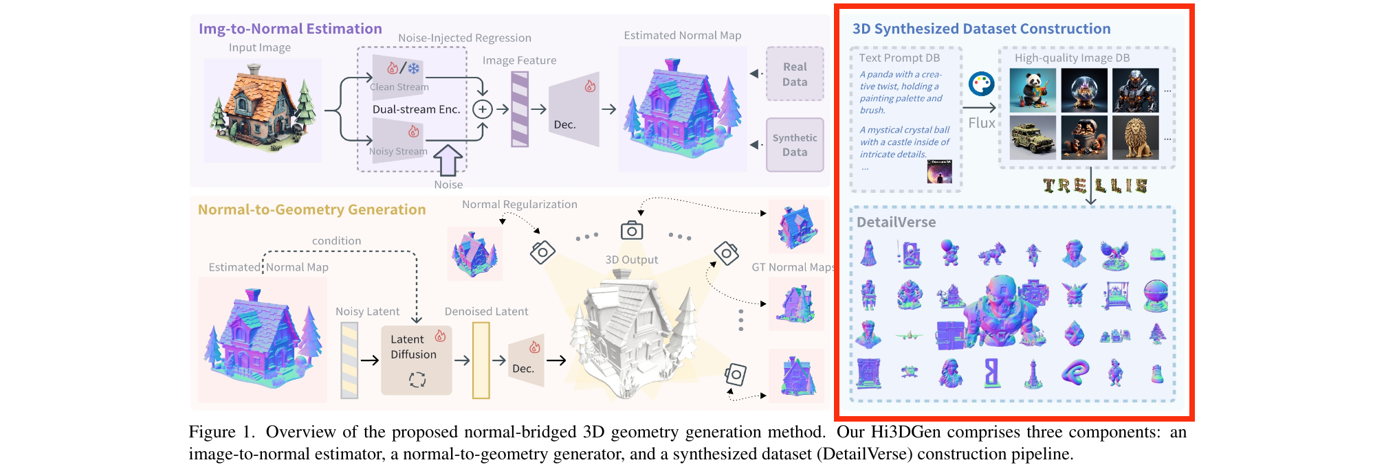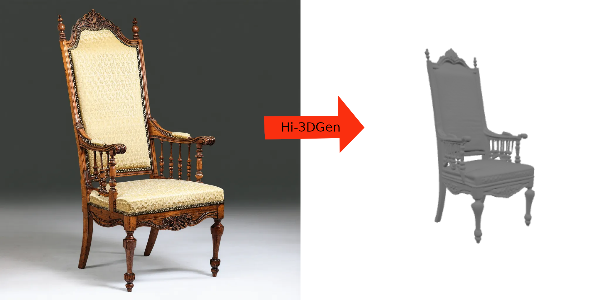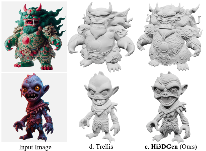 Hi-3DGen 1 finetunes TRELLIS 2, an Image to 3D model, using synthetic detailed Image-3D pairs