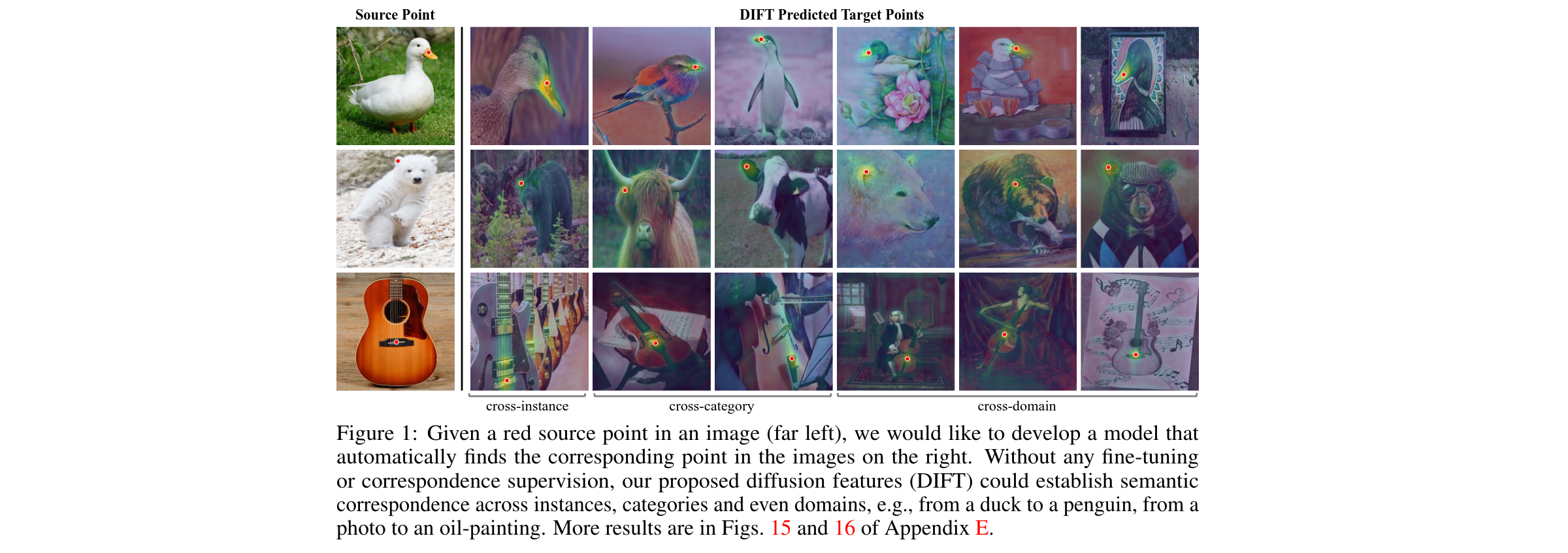 Diffusion models implicitly learns correspondences. The features of a trained denoiser can be used for zero-shot image correspondences (no fine-tuning) 1.