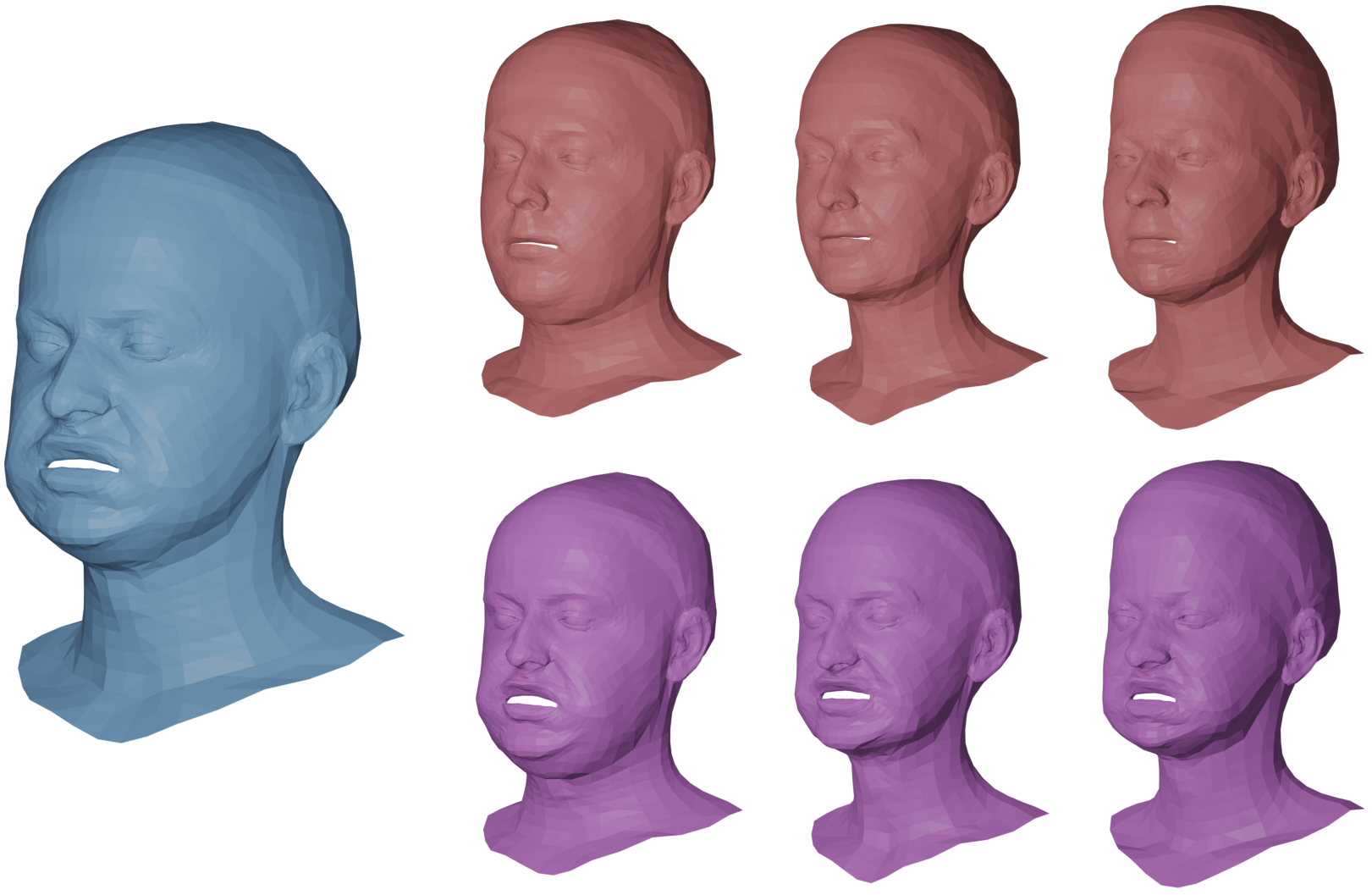 \[\operatorname{Imm}=\left\{ q\in C^{\infty}(\mathcal{T},\mathbb R^3): Tq \text{ is inj.}\right\}\]We define a linear Latent space, define as \({\mathcal L}\subset \mathbb R^{n+m}\), with latent vectors \(\alpha\) of human shapes: